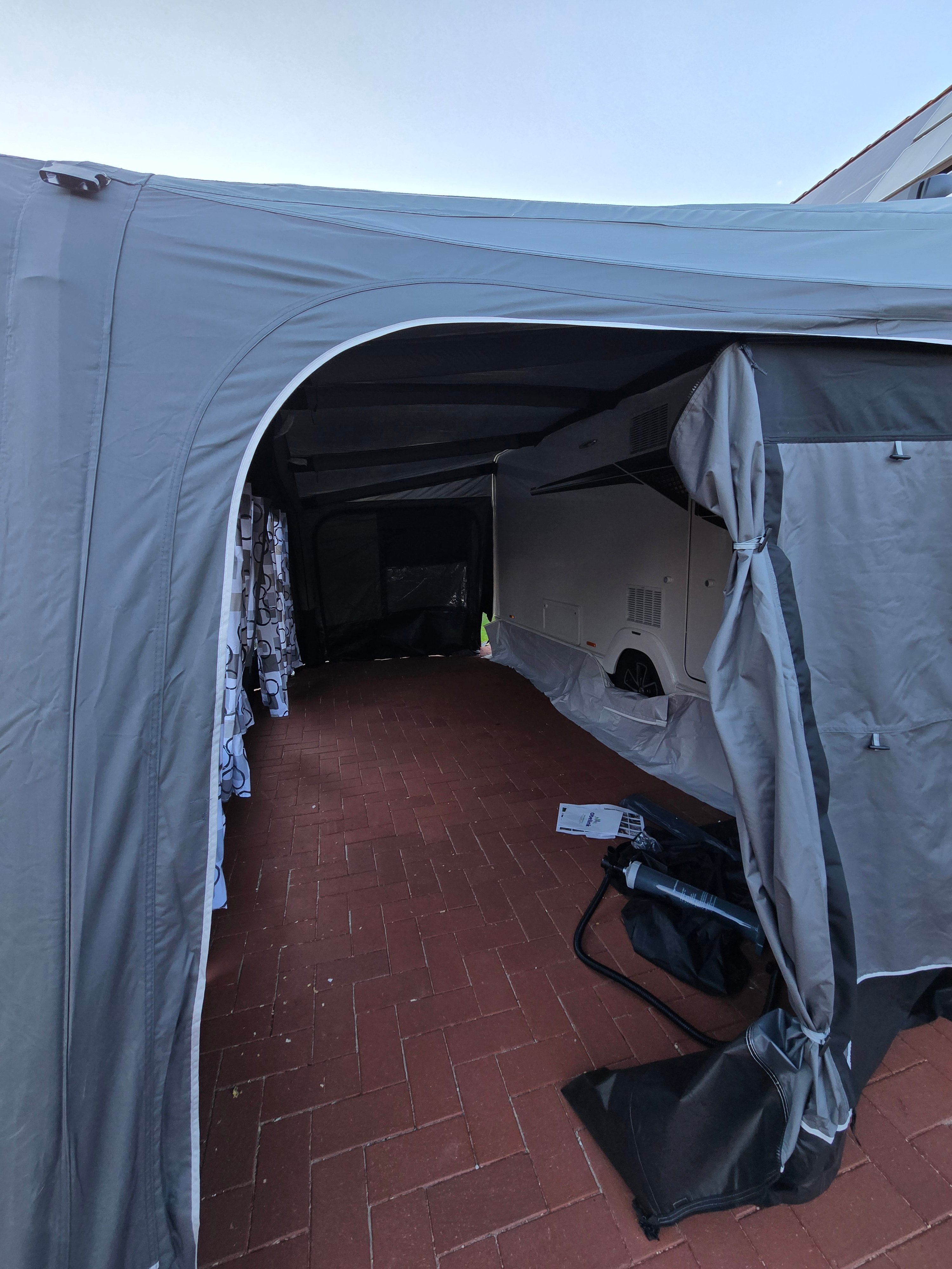 El avance hinchable Obelink Neptune 240 Easy Air tamaño 15 es un avance para caravanas con un perímetro de entre 1001 y 1025 cm que cubre toda la caravana.