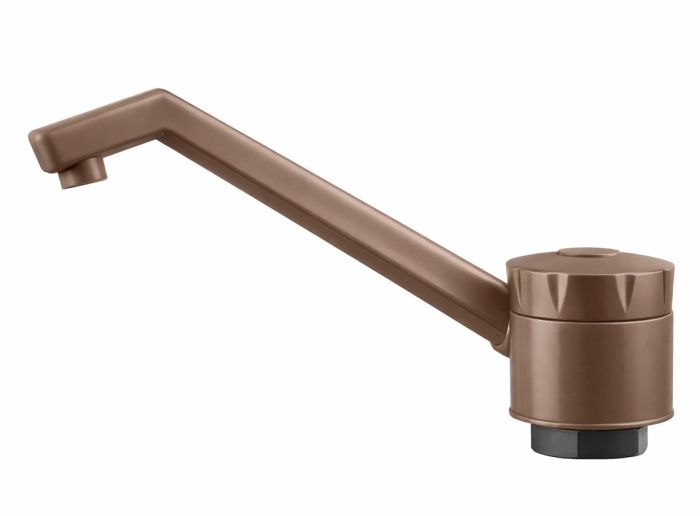 El grifo de agua fría blanco es adecuado para la caravana, autocaravana o barco. El grifo tiene una presión máxima de 10 bar y se puede adquirir en marrón o blanco.