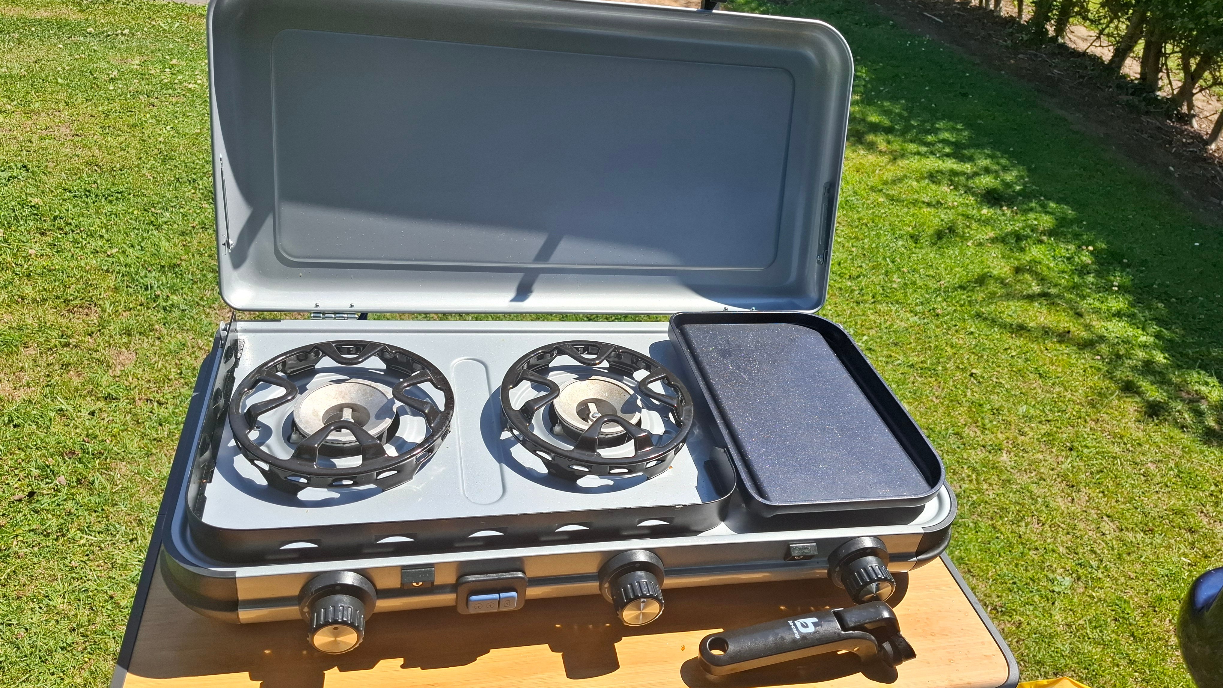 La cocina Campingaz Camping Kitchen 2 Multi-Cook cuenta con dos hornillos de camping de 1800 W y un grill de camping de 900 W.