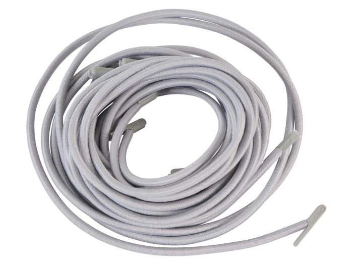 Es un set de 2 elásticos largos (220 cm) y 2 elásticos cortos (115 cm). Todos los elásticos tienen en los extremos puntas de plástico, para facilitar su fijación.