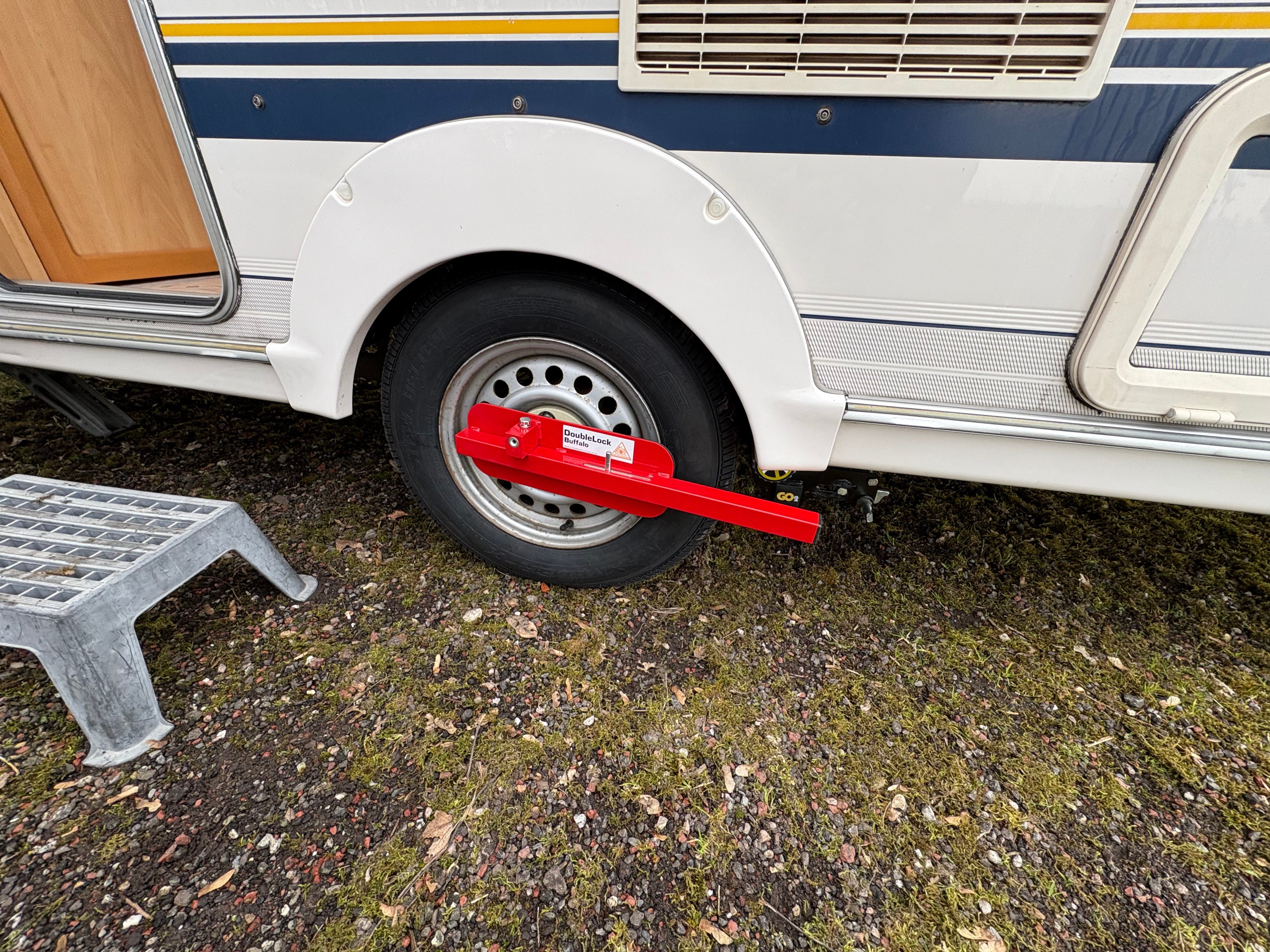 - Tikkeltje knullig slot met SCM keurmerkDit slot past niet goed op de 2025 serie van Weinsberg caravans (met stalen velgen natuurlijk). De gaten in de velg zitten te diep of de rode sluithaak is te kort, het is net hoe je het bekijkt. Je kunt hem met moeite net gemonteerd krijgen, maar met een beetje kracht zetten vliegt hij er al af. Ik vind sowieso dat de rode sluithaak tekort is gekozen, ik heb er 3cm aan gelast. Overtuig jezelf ervan dat hij echt stevig zit en flinke krachten kan verdragen. De manier waarop de boel op slot gaat is niet echt verfijnd en gaat met grote stappen. Het verbaast mij toch een beetje dat er SCM keur op zit.