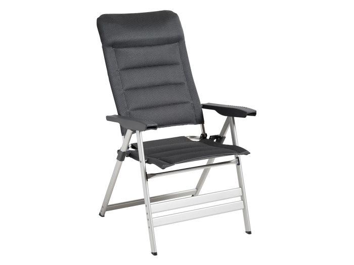 Tanto el espaldar como el asiento son ergonómicos y una capacidad de carga máxima de 200 kg. La Dukdalf Grande 8800 es muy firme debido al marco de aluminio anodizado con refuerzo doble en el interior. Cuando está plegada es muy compacta. Al apilar 2 sillas, una sobre la otra, solo tiene 17 cm de altura.