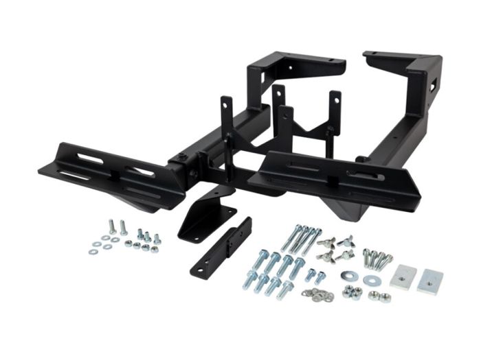 El kit consta de un adaptador de chasis, una placa atornillable, un soporte para la rueda de repuesto y todos los tornillos, arandelas y soportes necesarios. Todo está especialmente adaptado a la estructura de los Volkswagen T5 y T6. Gracias a los materiales de alta calidad y a los resistentes puntos de fijación, este sistema ofrece una conexión estable, incluso con cargas adicionales o kilómetros recorridos por carreteras irregulares.