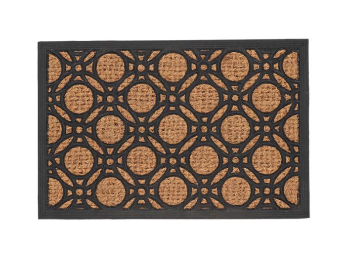 Fabricado con una resistente combinación de caucho y fibras de coco, este felpudo no solo es un elemento decorativo, sino que también ofrece una excelente funcionalidad. Las cerdas de coco rugosas eliminan eficazmente la suciedad de los zapatos, mientras que el caucho resistente garantiza un agarre firme y una gran durabilidad.