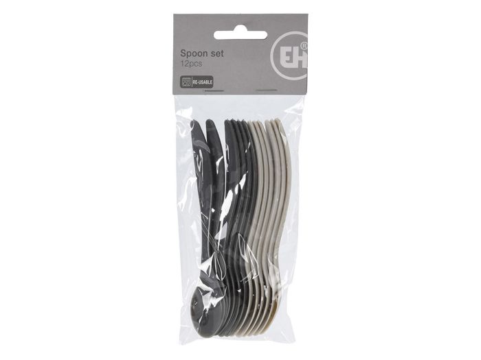 Este set de cucharillas Excellent Houseware consta de 12 piezas. 6 de color gris oscuro y 6 de color gris claro.