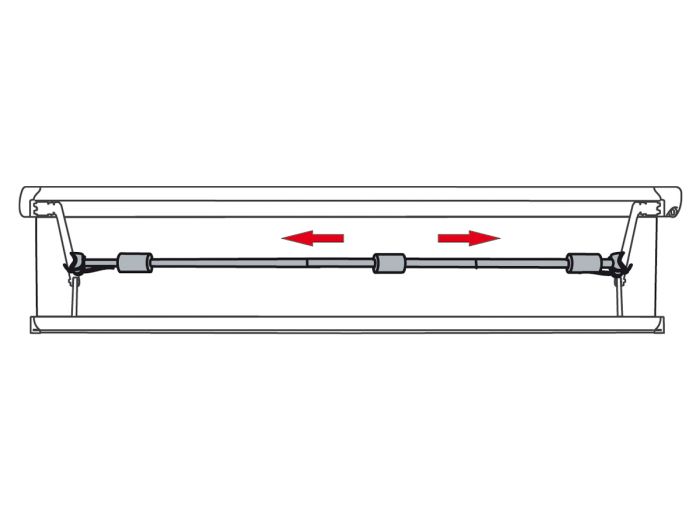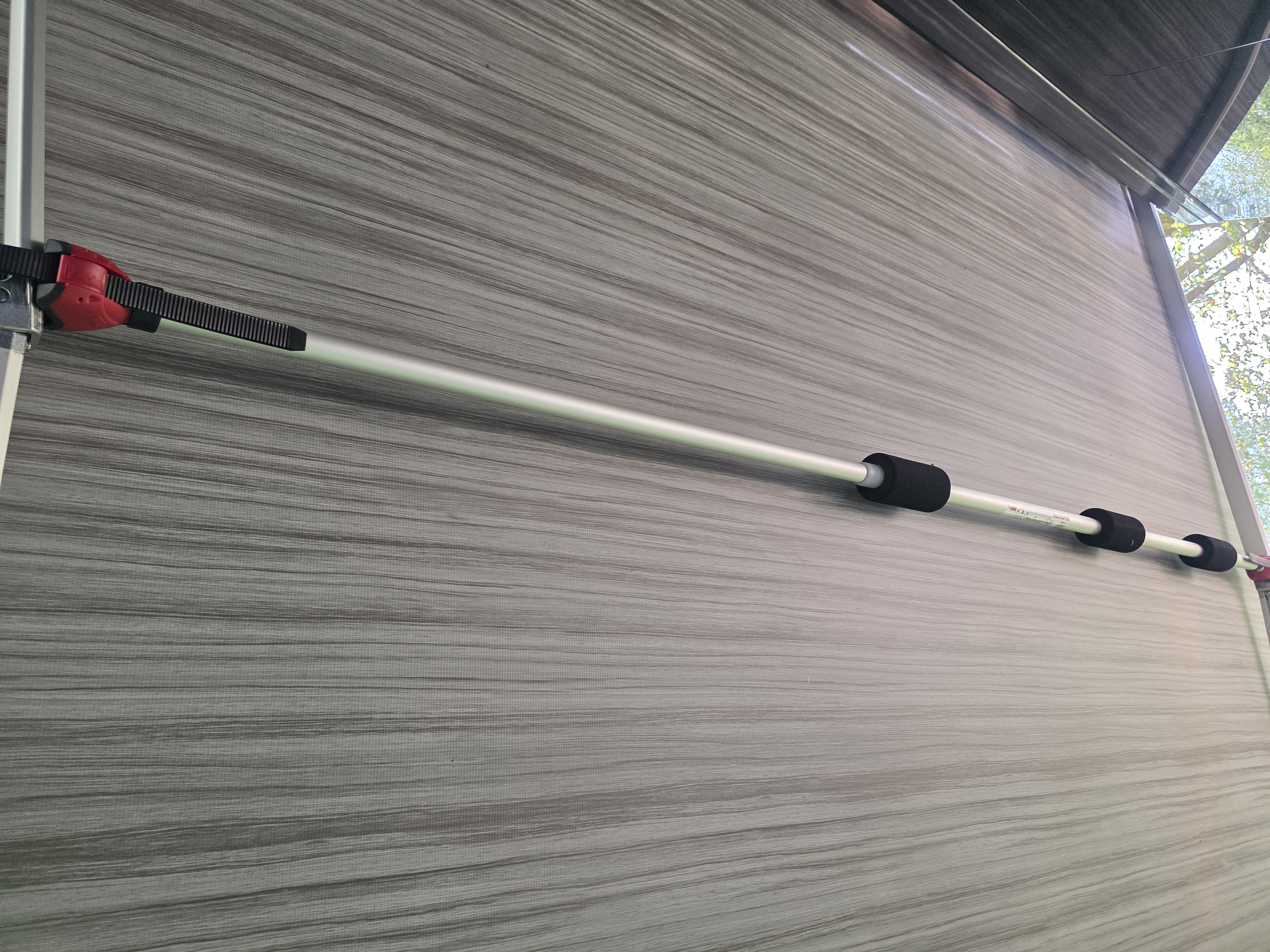 La Fiamma Magic Rafter es una varilla de tensión fuerte de aluminio anodizado. La Magic Rafter se coloca a lo largo del toldo asegura que los brazos plegables del toldo de cassette permanezcan en su sitio. Los cojines de espuma en la Rafter evitan que la lona del toldo se cuelgue y evitan que la tela del toldo se dañe. Gracias a su montaje sencillo y universal, el Magic Rafter es adecuada también para toldos de otras marcas.