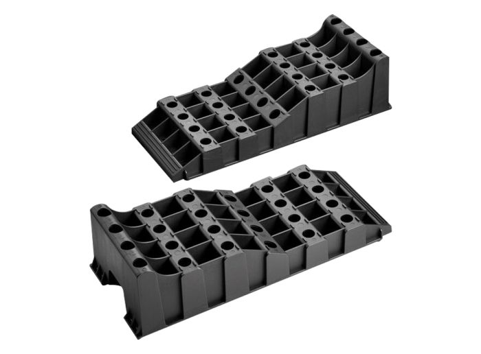 Con dos alturas de acceso de 6,5 cm y 11,5 cm, los niveladores ofrecen flexibilidad en diferentes situaciones. Esto no solo ayuda a nivelar su vehículo, sino que también evita una tensión excesiva en los neumáticos y la suspensión. El agarre resistente de la superficie evita que se deslice y garantiza que las ruedas permanezcan en su sitio.