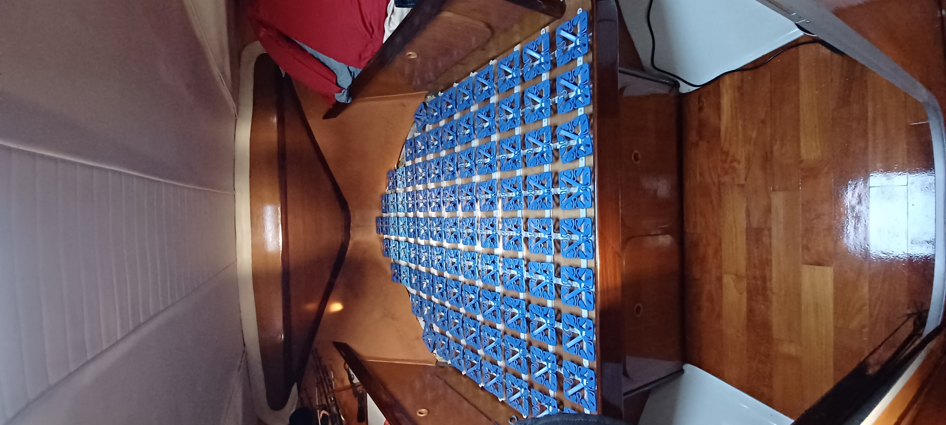 El paquete básico pesa 2,2 kg por m² o 61 gramos por elemento. El paquete consta de 60 cruces básicos, 50 elementos de resorte estándar, 10 elementos de resorte blando y 10 cruces de tensión.