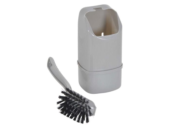 La mini escobilla para baño de Goldcamp se suministra de forma estándar con un soporte a juego.