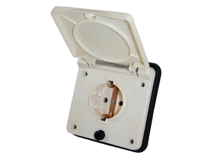 Este tomacorriente con disyuntor automático a tierra de protección incorporada está hecha para conectar 230 voltios desde la caravana o autocaravana. Ideal para por ejemplo conectar una nevera portátil o una cafetera en el avancé, por ejemplo. Estinterruptor está disponible en color crema o blanco.
