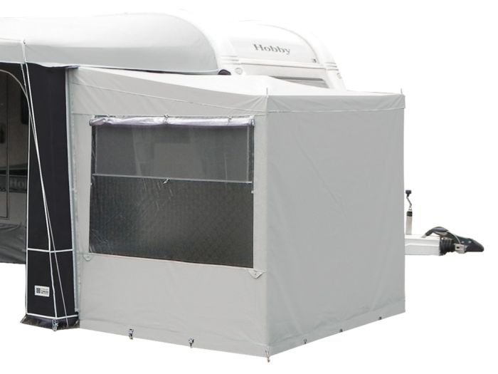 Con un anexo se crea un espacio extra en el toldo, que es muy útil para guardar cosas, para cocinar y para usar como un lugar extra para dormir. Gracias al suave y resistente material de PVC, este anexo es fácil de limpiar y puede permanecer afuera durante toda una temporada.