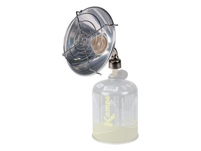 El Kampa Glow Single Parabolic es un calentador de gas compacto que se puede conectar fácilmente a un cartucho de gas.