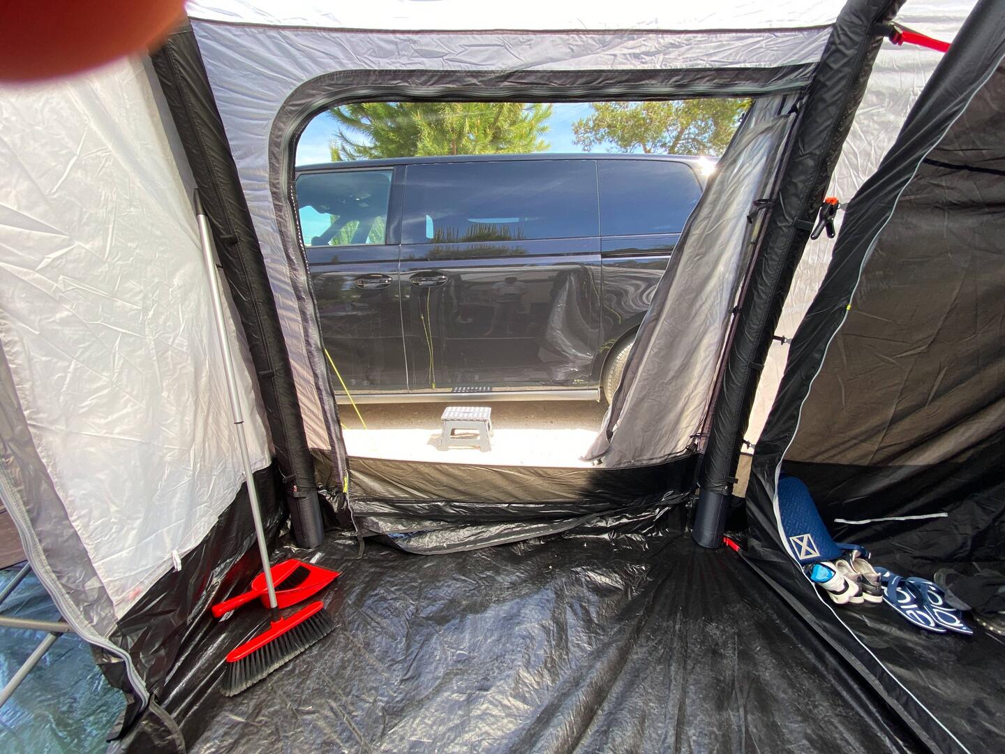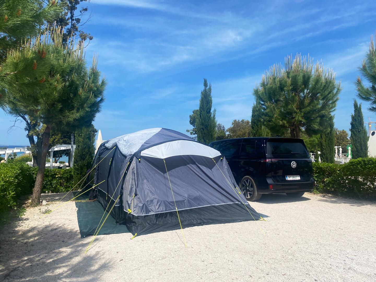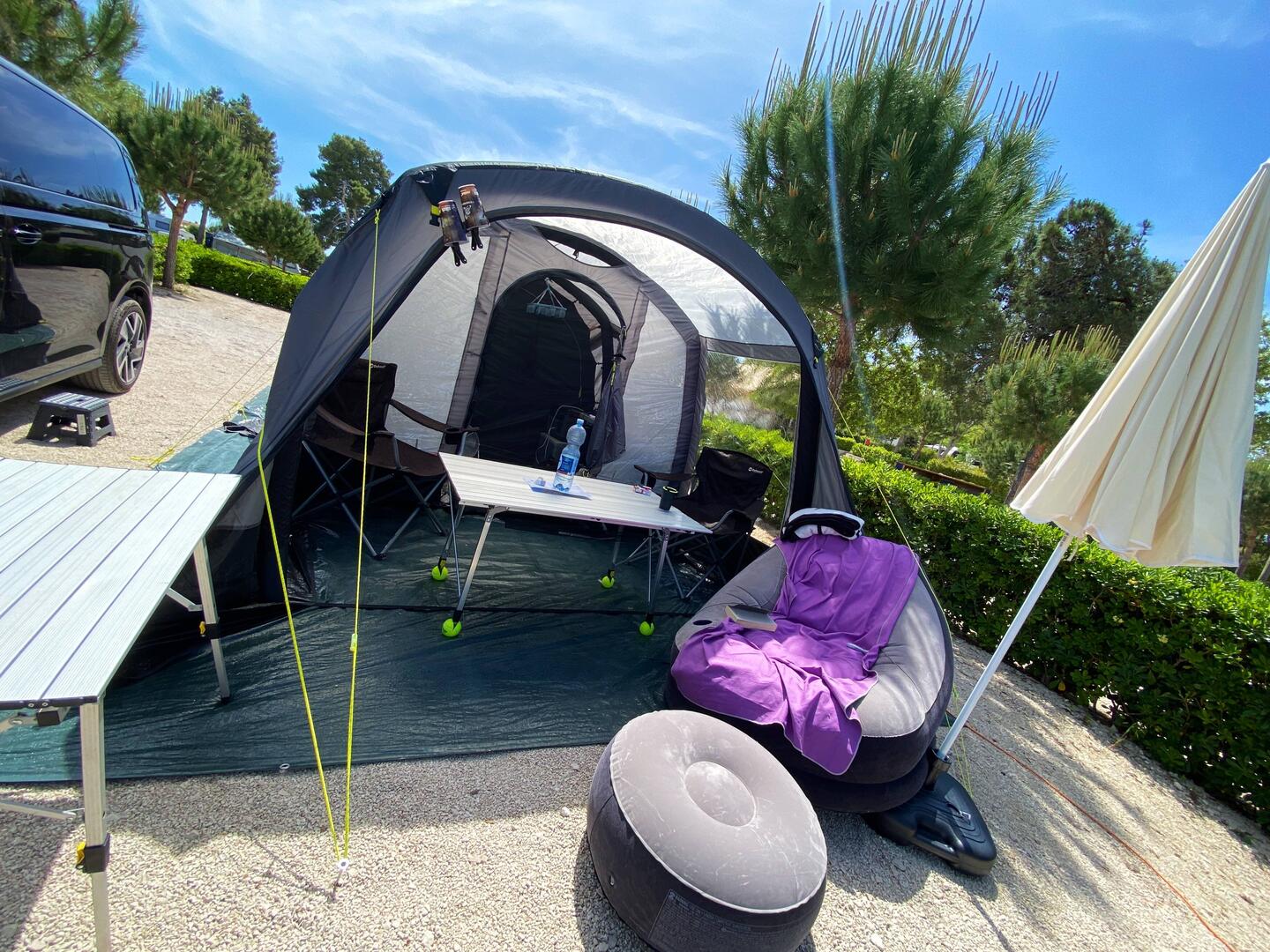Este avance está especialmente diseñado para colocarse longitudinalmente junto a la furgoneta camper, aprovechando al máximo el espacio disponible en el camping.