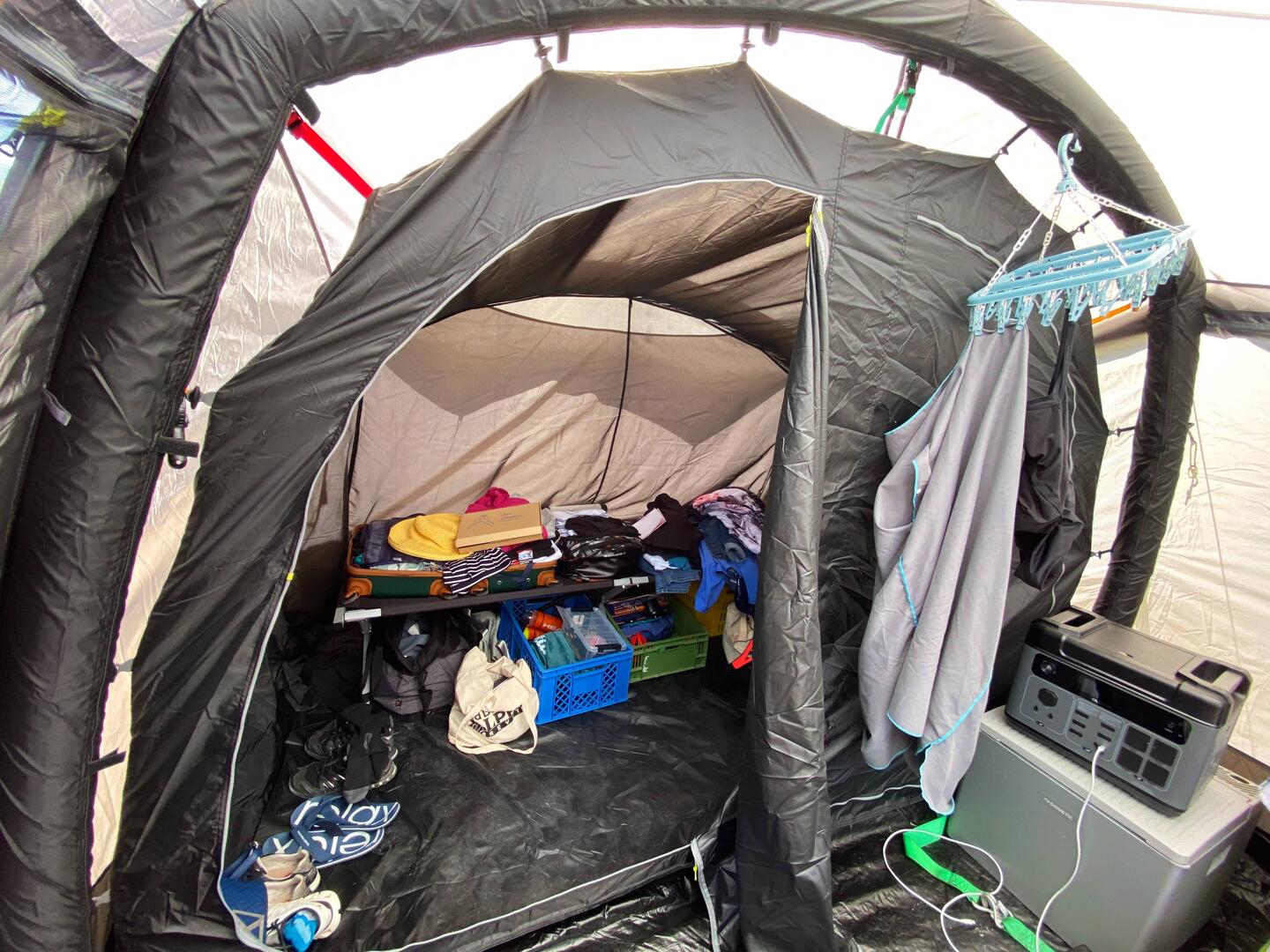 En el interior del Touring Air encontrará un espacio habitable amplio y luminoso con una de las puertas de malla. Se incluye de serie una gran habitación interna para cuatro personas, fabricada con material opaco para impedir la entrada de la luz solar.
