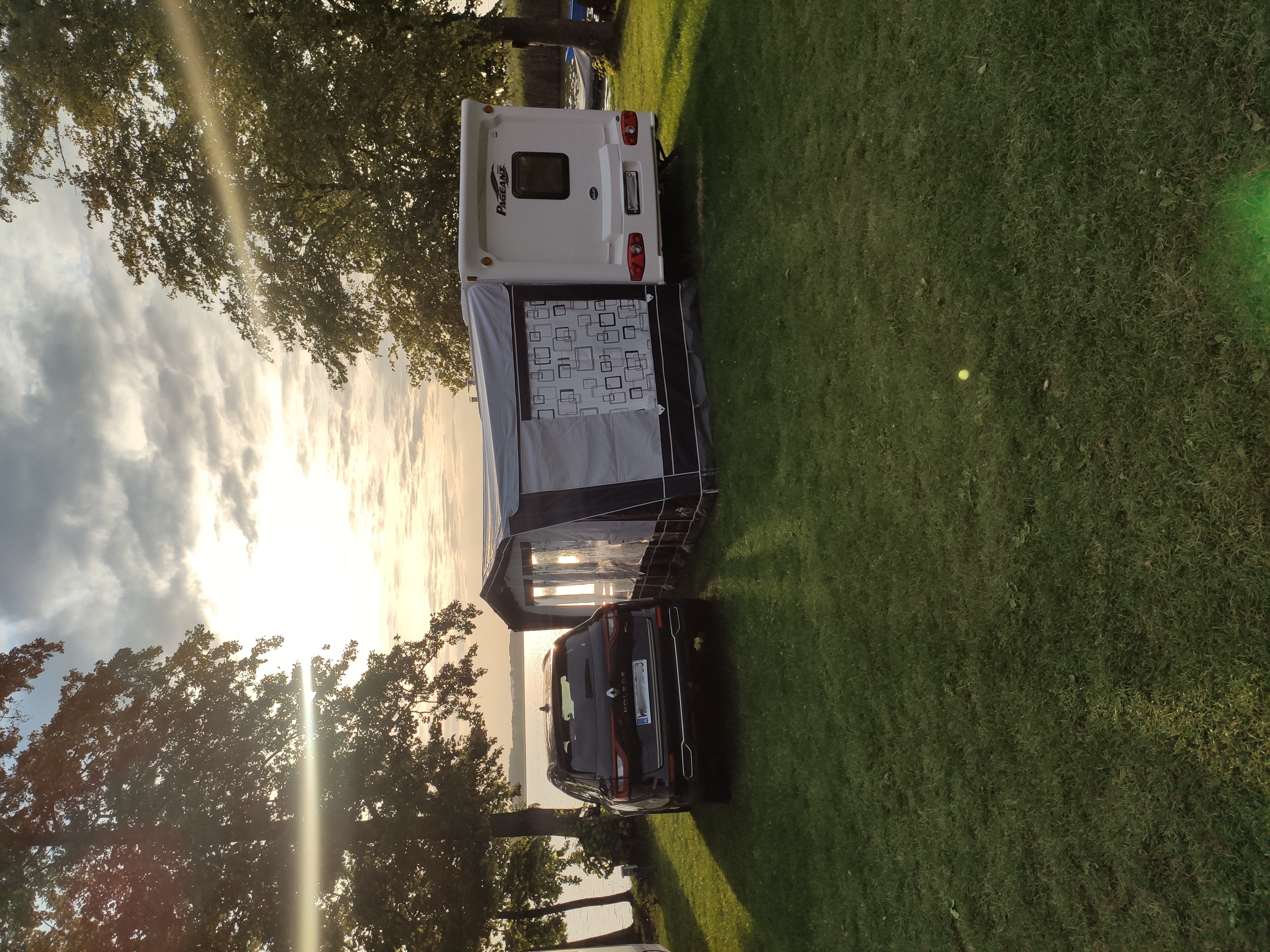 Una caravana aerodinámica es una caravana con la parte delantera inclinada.