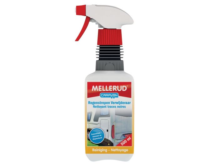 El removedor de rayas de lluvia de Mellerud elimina fácilmente las rayas de lluvia de la caravana o autocaravana.
