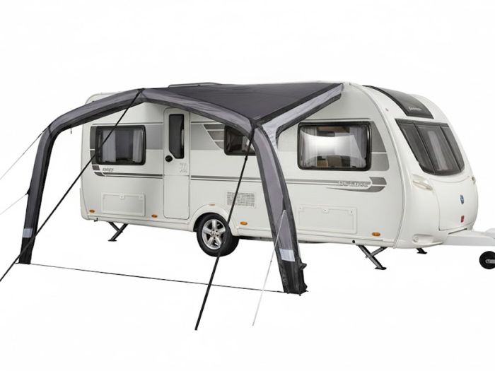 El toldo hinchable para caravanas Obelink Arcade 390 Sunroof Easy Air se monta rápidamente gracias al sistema EasyAir.
