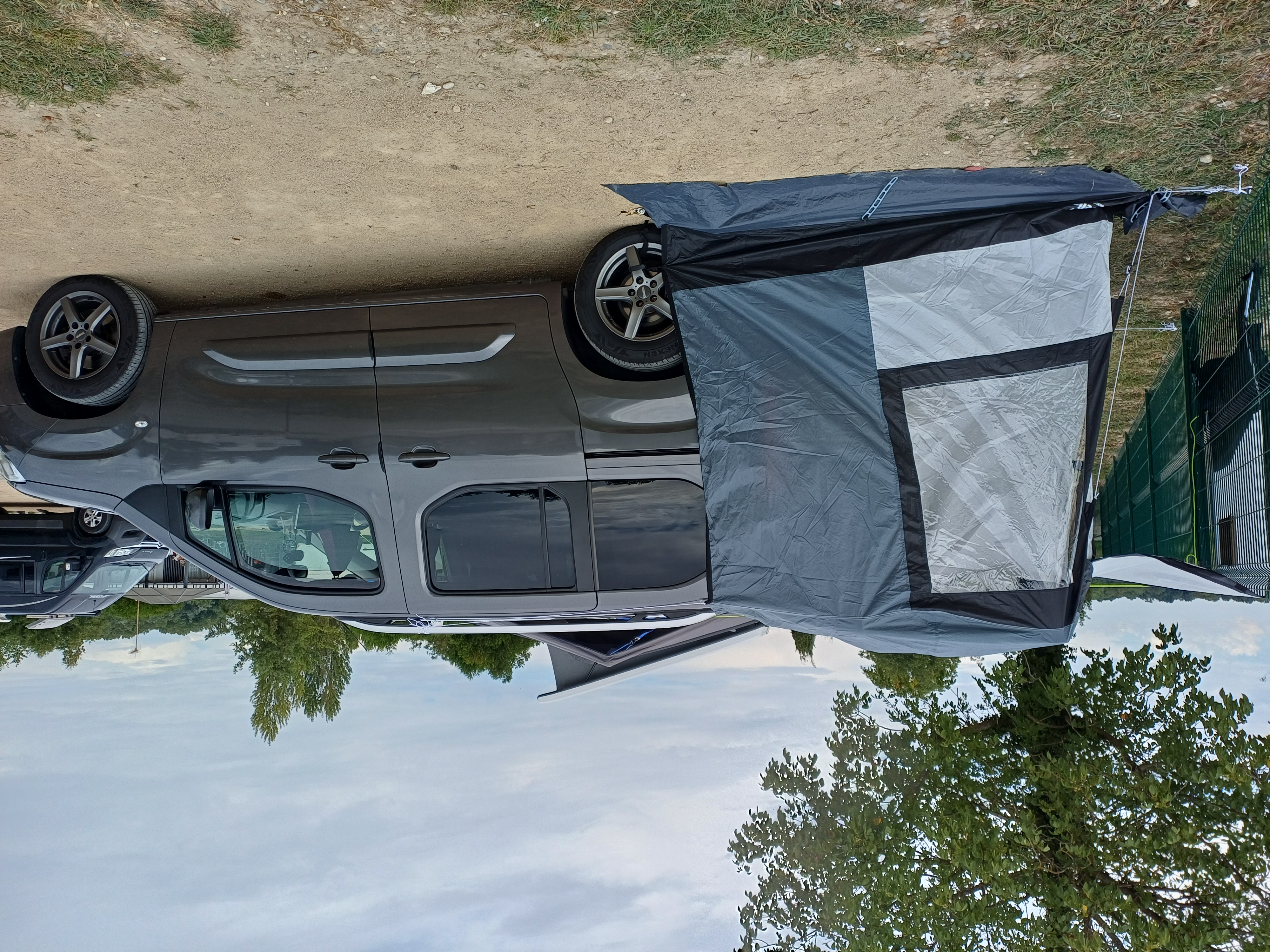 Con el Backside crea espacio extra. Práctico para cocinar, para sentarse o para guardar cosas. Otra ventaja es que tiene una entrada cubierta. Si hace malo, puede dejar su ropa mojada en el avance y subir a la furgoneta sin estar mojado. Si hace buen tiempo, puede poner la puerta delantera grande como un toldo con las varillas incluidas. De esta manera hace de su portón un gran toldo bajo el que se puede sentar y disfrutar de una bebida refrescante, del buen tiempo o de la puesta de sol.