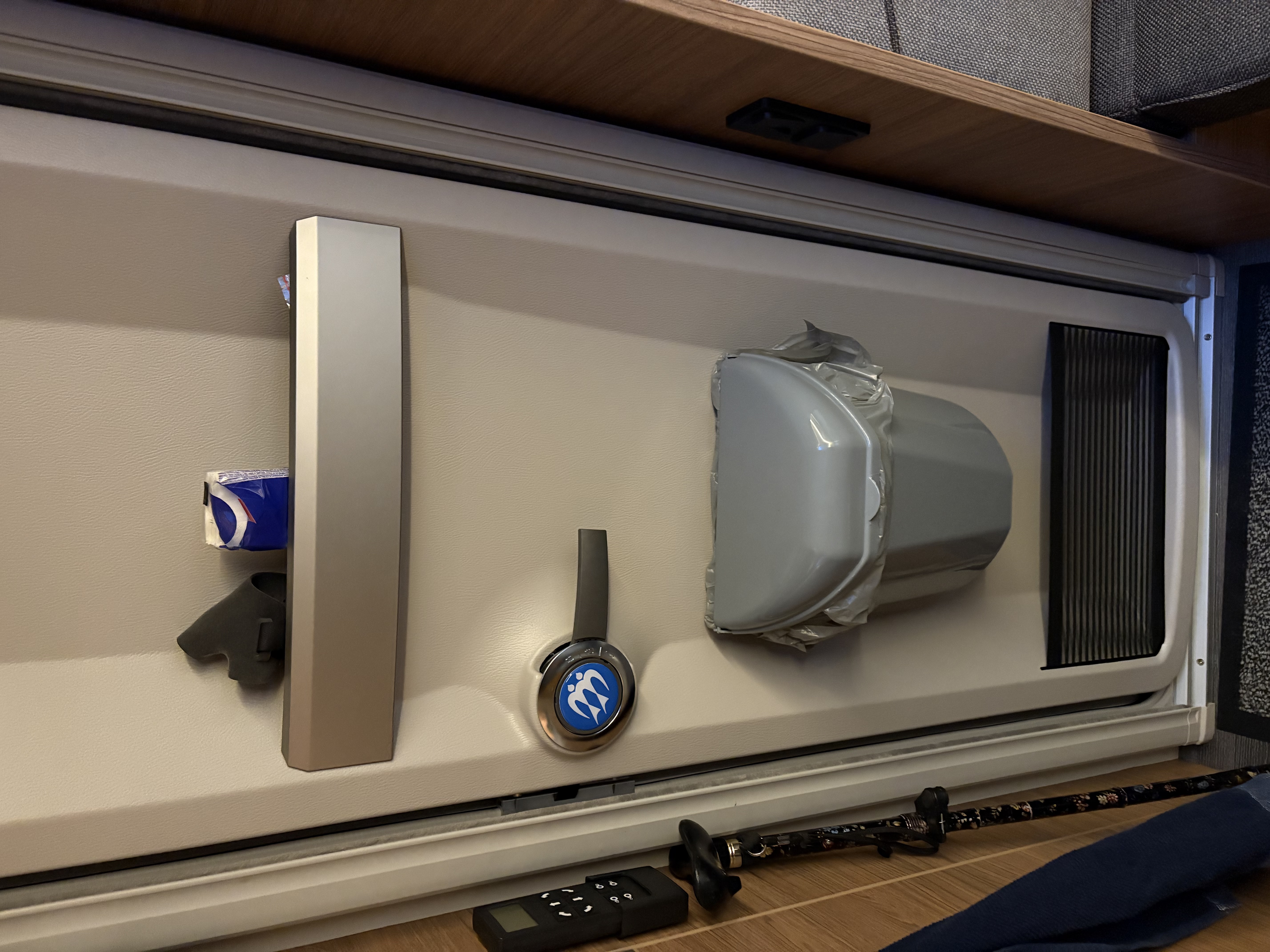 El Obelink Clean & Easy es un práctico cubo de basura con tapa para pequeños residuos en la caravana, la autocaravana o el barco.