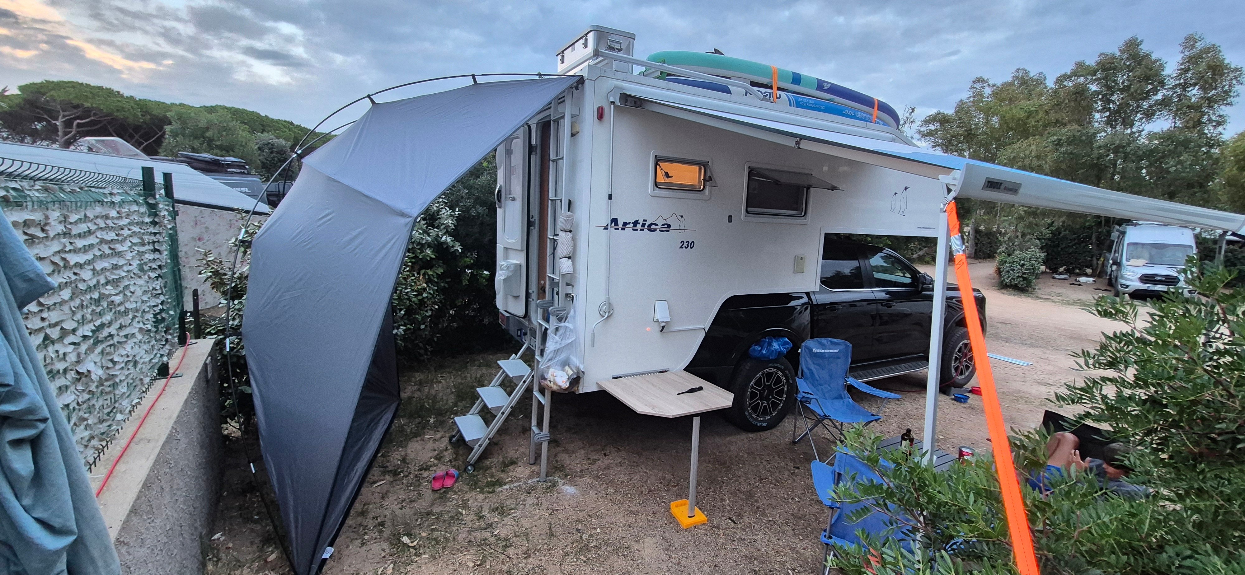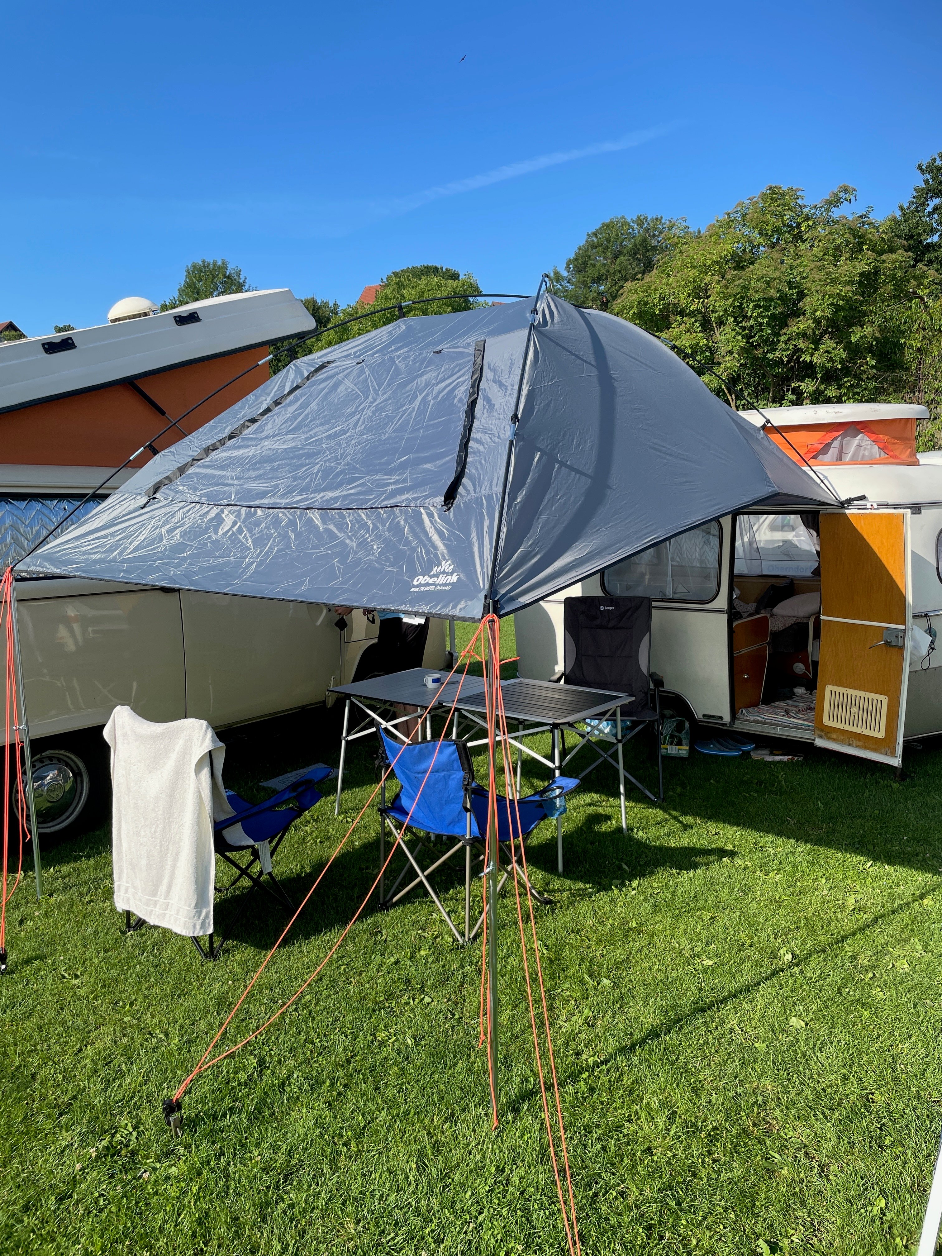 El toldo multifuncional Obelink Donau es multifuncional y universal adecuado para tiendas de campaña, campers, autocaravanas y caravanas.