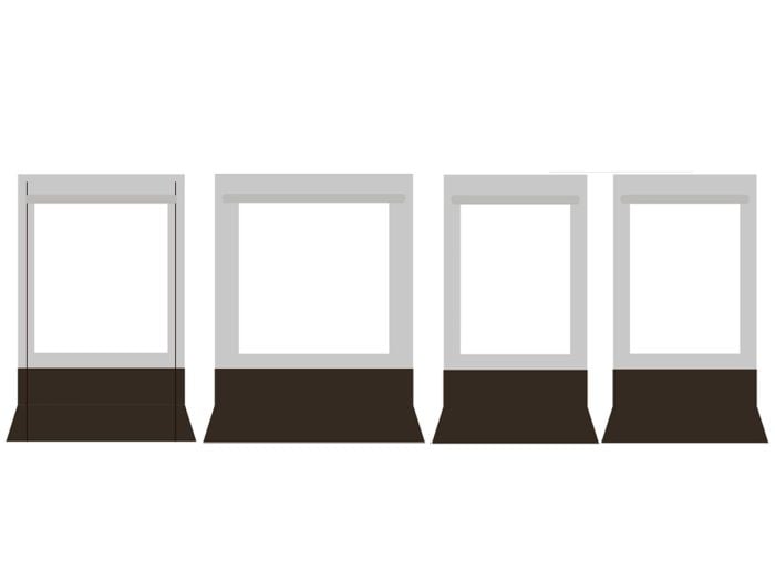 Como la pared frontal completa consta de cuatro paneles separados, puede elegir dónde colocar cada panel. Puede colocar el panel de la puerta a la izquierda, a la derecha o en el centro.