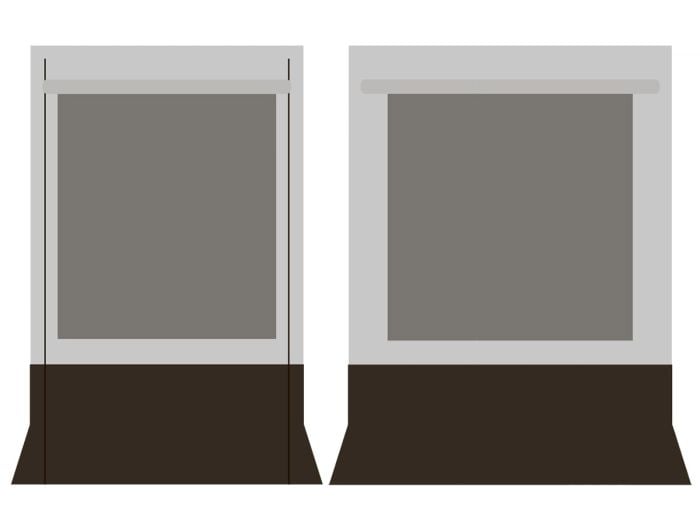 Como la pared frontal completa consta de dos paneles separados, puede elegir qué panel se coloca dónde. Así, puede colocar el panel de la puerta a la izquierda o a la derecha.