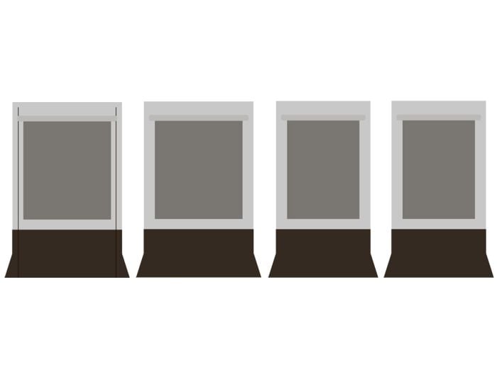 Como la pared frontal completa consta de cuatro paneles separados, puede elegir qué panel se coloca dónde. Así, puede colocar el panel de la puerta a la izquierda o a la derecha.