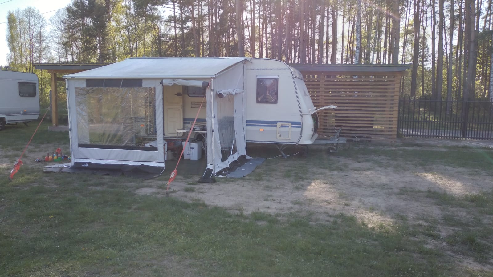 La pared lateral lleva un cojín de espuma que se fija contra la pared de la caravana con la ayuda de la varilla de apoyo (opcional, es decir, que se debe adquirir aparte). De esta manera, la pared lateral se ajustará bien contra su vehículo.