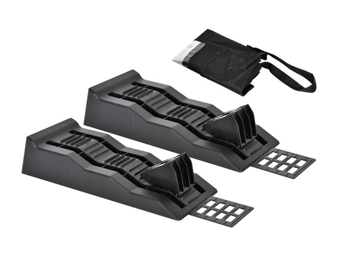 Gracias al diseño compacto y a la bolsa puede llevar fácilmente el kit de niveladores en sus viajes. Este kit garantiza una experiencia de acampada estable y segura sin que tenga que preocuparse de que su vehículo esté desnivelado.