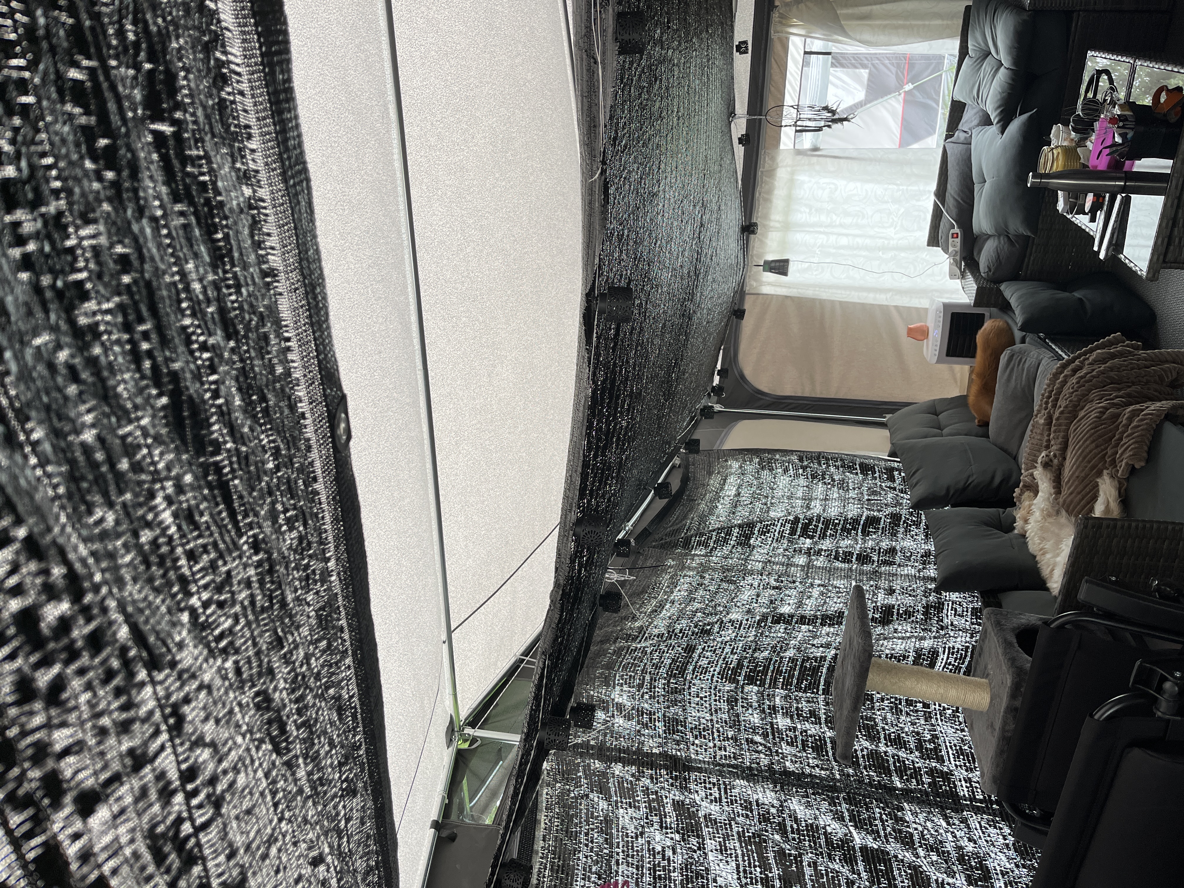 Esta lona de sombra se puede utilizar de diferentes maneras. Tiene un cordel de 5mm y otro de 7 mm. A través de este último puede poner la lona de sombra en la guía de la caravana o con el cordel de 5 mm puede poner la lona en la guía del toldo de casete o de bolsa. Por otro lado, es posible fijar la lona de sombra al avance con tiras de conexión. Estas se pueden adquirir a parte. Para ello es necesario que el avance tenga un cordel en el techo.
