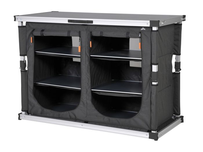El Obelink Lucca Quick - XL es un robusto armario de camping con mucho espacio de almacenamiento y una encimera de MDF.