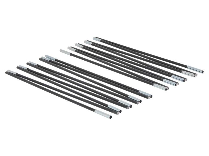 El set de varillas de fibra de vidrio Obelink Lugano 6 XL Excellent consta de 4 varillas de fibra de vidrio para las tiendas túnel Obelink Lugano 6 XL Excellent y Obelink Lugano 6 XL Excellent CoolDark.