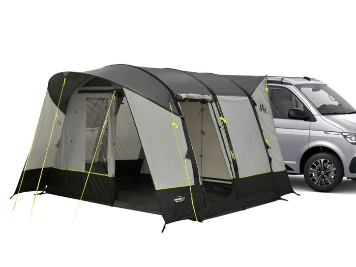 El avance hinchable para camper Obelink Mallorca Easy Air ofrece más espacio que muchas otras tiendas de este tipo. Su amplio espacio habitable es ideal para quienes salen con frecuencia en primavera u otoño o para quienes simplemente desean disfrutar del espacio adicional desde un punto de vista lujoso.
