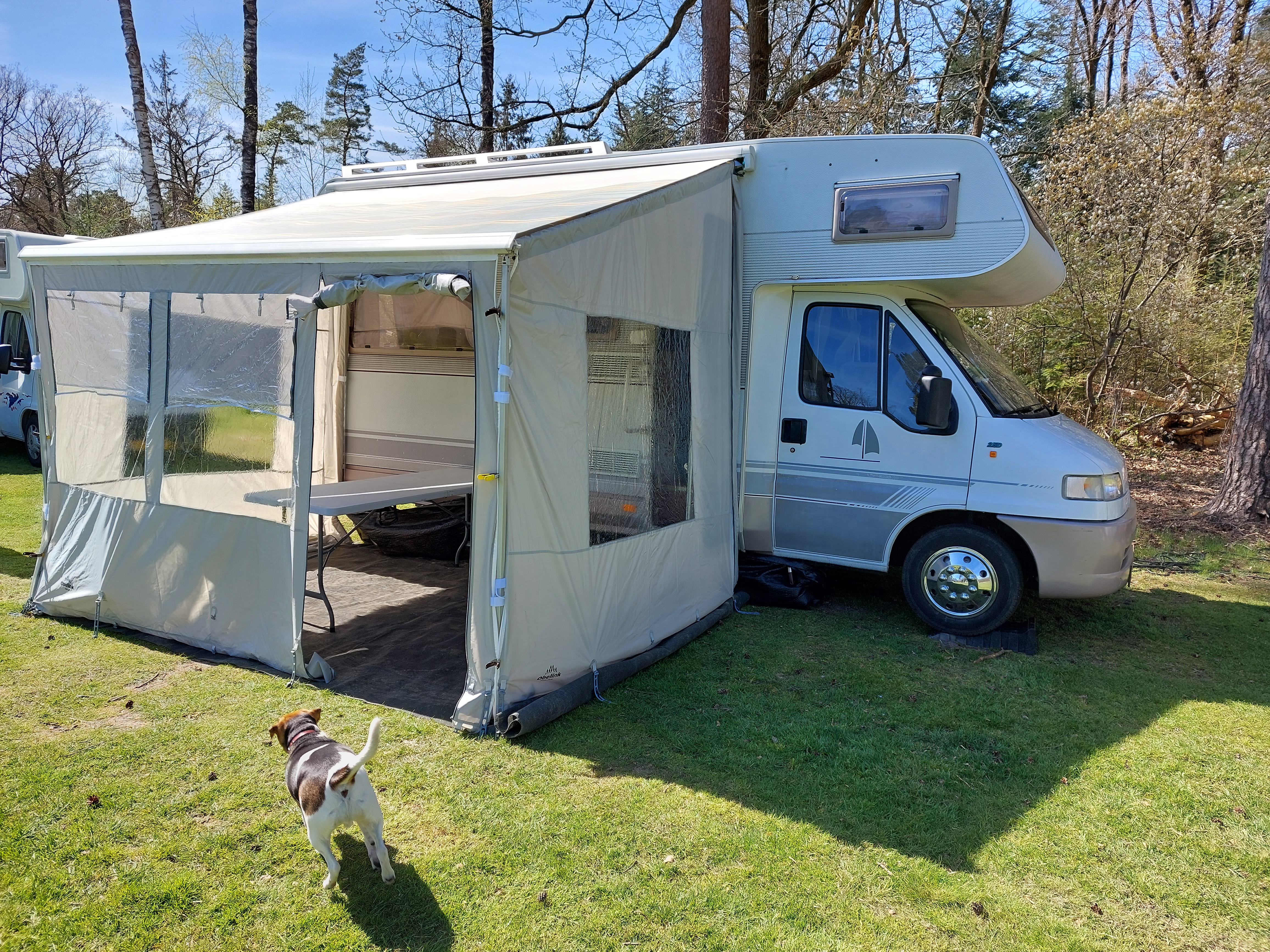 Hay cosido un cojín de espuma en el lado del vehículo de la pared lateral, con la varilla de apoyo opcional (es decir, no incluida) puede presionar el cojín de espuma contra la pared de su autocaravana o caravana. De esta manera, la pared lateral se ajustará bien a su vehículo.