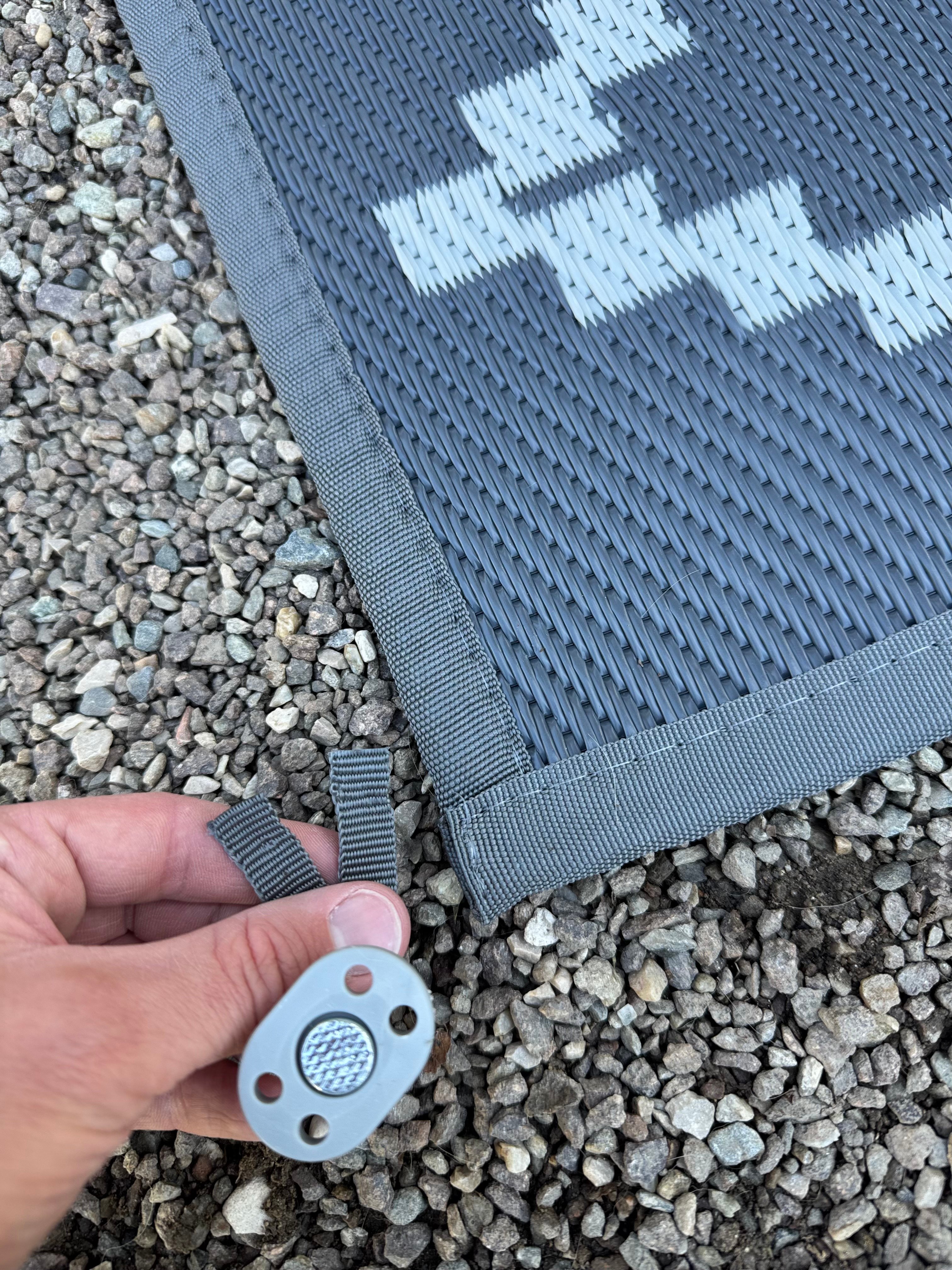 Esta resistente alfombra tiene un diseño moderno y es resistente a la suciedad, a la putrefacción y a los rayos UV, además de ser fácil de limpiar. La alfombra está hecha de polipropileno tejido con un borde de poliéster alrededor. La estructura de tejido denso mantiene los bichos fuera.