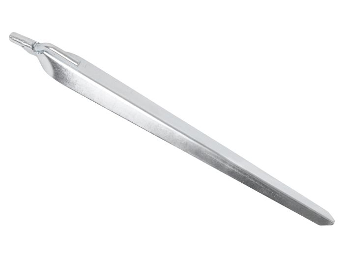 La piqueta para cincha antitormenta con gancho de fijación, tiene unos 38 cm de largo y 2 cm de ancho. Este gancho de acero se puede utilizar en cualquier tipo de suelo excepto en uno rocoso.