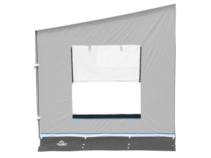 La pared lateral Obelink Queen Dometic&Prostor derecha es una pared lateral derecha completa para los Dometic PW1000, PW1100, PW1500, PW1750 y para los toldos de casete Prostor 350, 500, 550, 600 y 750, con una proyección de 250 cm. La pared lateral está hecha de poliéster 300D y tiene una solapa antibarro de PVC. Esta solapa de PVC permite mantener la pared lateral limpia y hace que dure más tiempo. También hay una gasa de ventilación en la mitad superior de la ventana, que se puede cerrar con una solapa transparente.