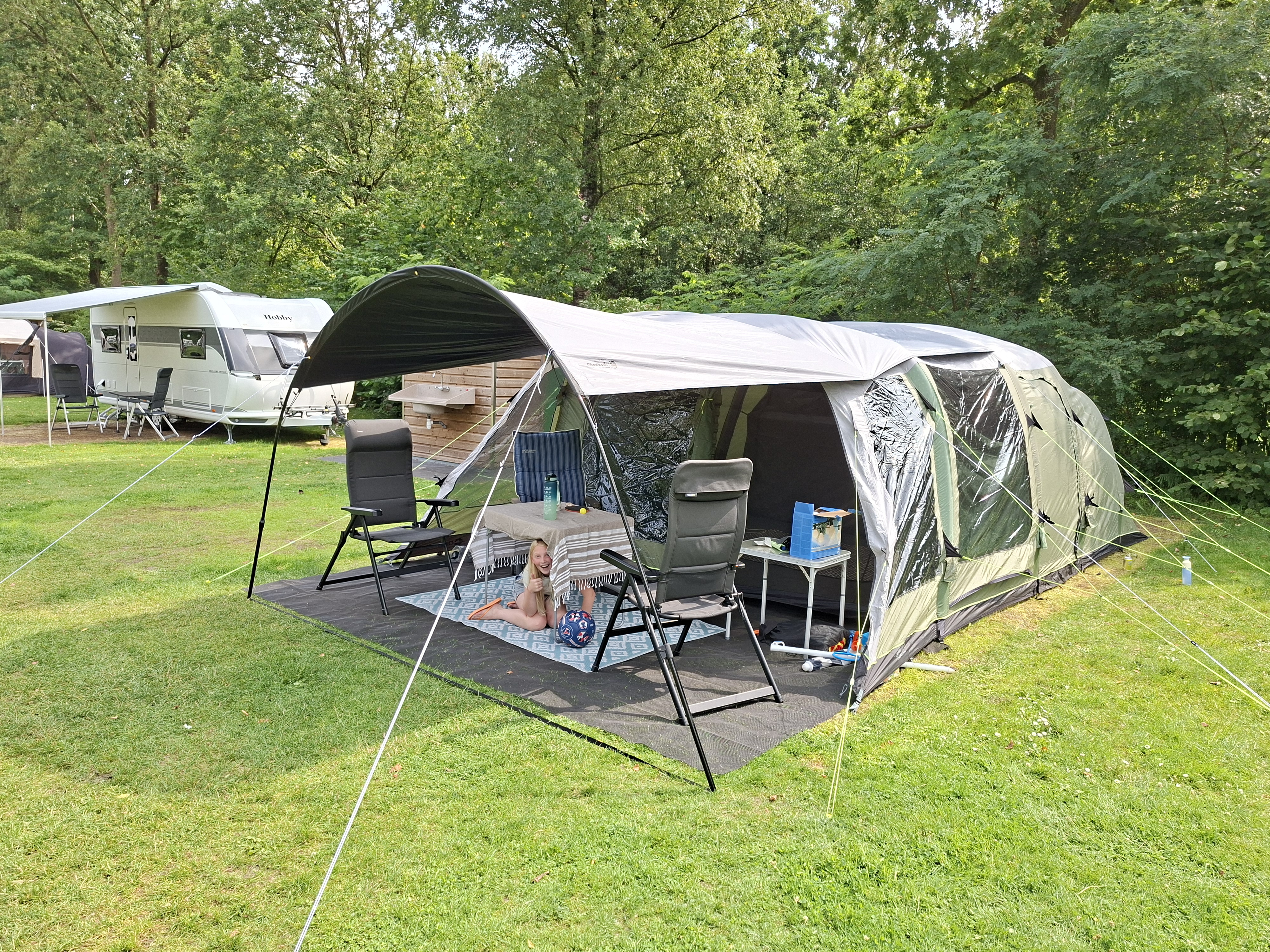 La lona del toldo tiene una longitud de nada menos que 4,60 m. Como el toldo es variable, puede elegir hasta dónde lo extiende sobre la tienda. ¿Está satisfecho con un toldo de 150 cm? Entonces estire la lona más allá de la tienda. ¿Viaja con toda la familia y necesita un poco más de espacio? Eso es posible, sólo tiene que deslizar el toldo más hacia adelante. Como el Soleil CoolDark sólo tiene una varilla arqueada, se puede instalar muy rápidamente con lo que tiene mucho tiempo para relajarse.
