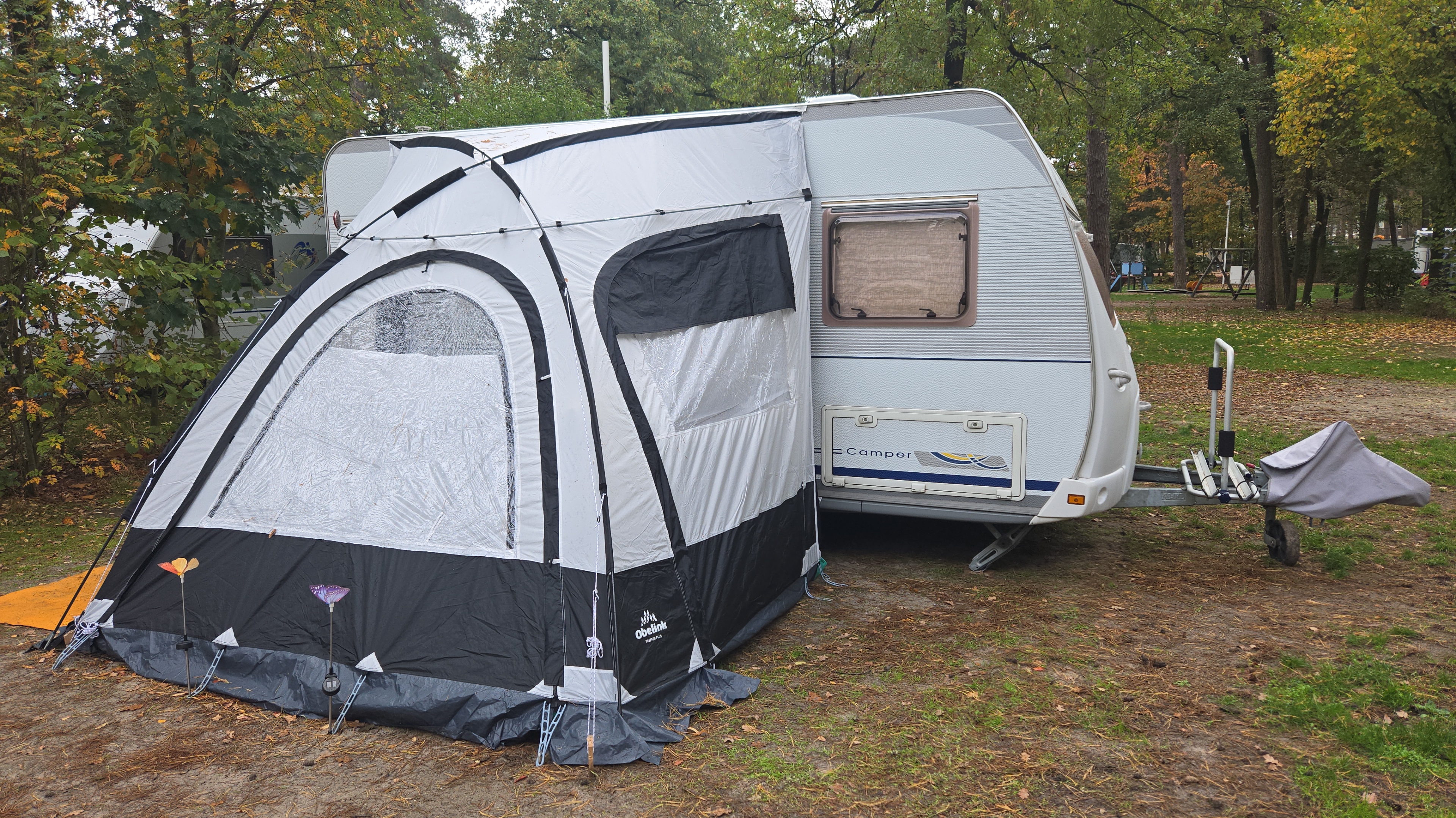 El Obelink Treffer Plus es el avance de caravana perfecto para los campistas itinerantes que no necesitan mucho espacio pero quieren un pequeño refugio cuando hace peor tiempo.