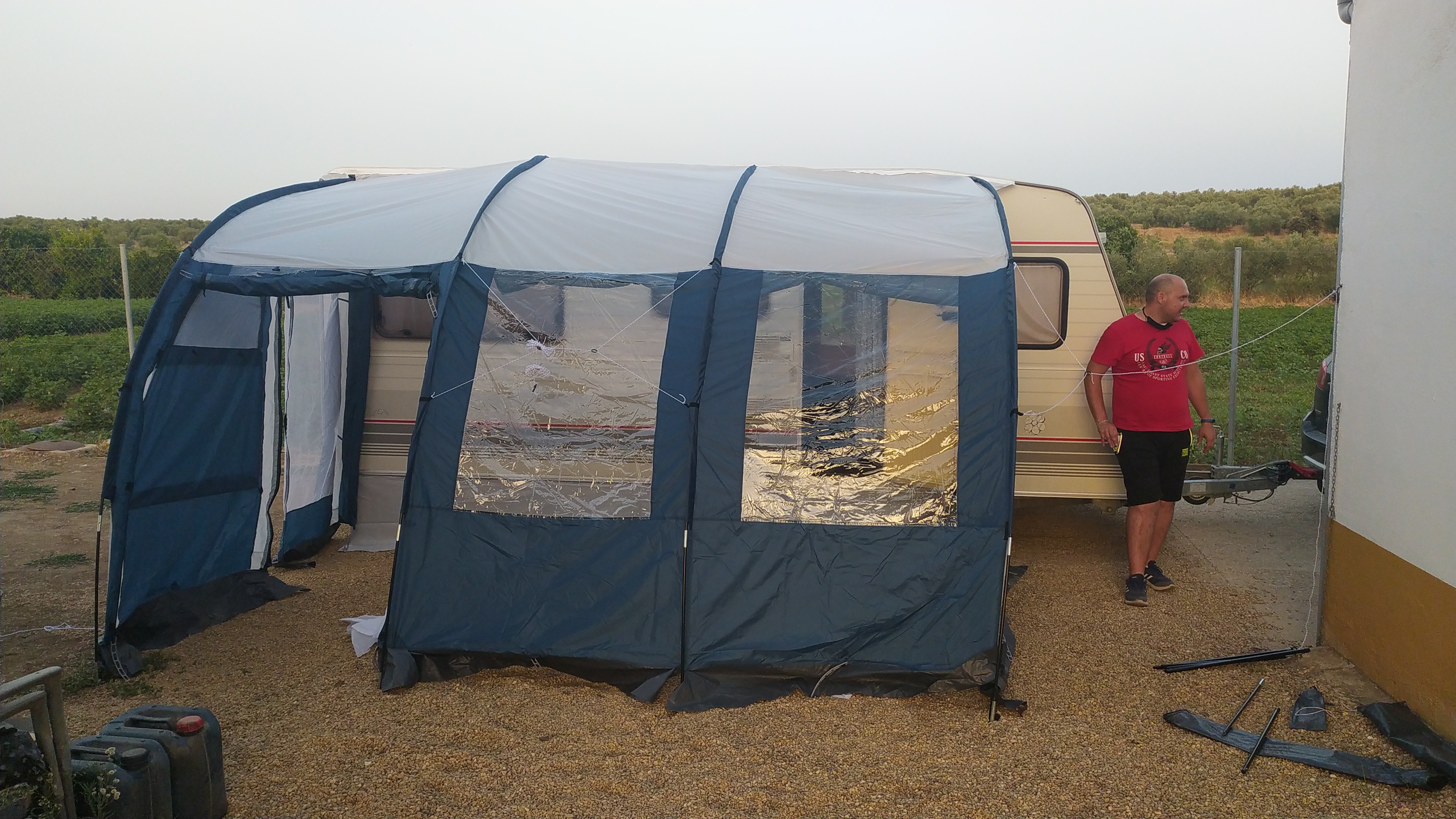 La tienda/avance tiene, en la lona exterior, al menos una mosquitera.