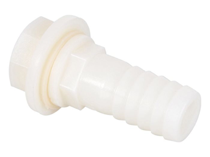 El conector de la manguera es de plástico y tiene un diámetro de 2 cm. También está equipado con un anillo de sellado y una tuerca para su instalación en depósitos de agua.