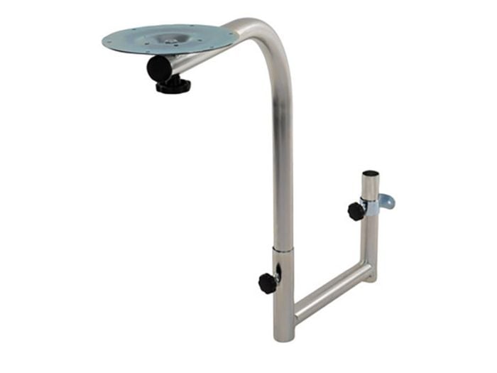 Fabricada en tubo de acero galvanizado con tornillería incluida, garantiza durabilidad y longevidad. Fácil de guardar y regulable en altura. La función giratoria, accionada por un cómodo pomo, permite ajustar la altura. La estabilidad está garantizada con un soporte adicional y una placa de montaje plana.