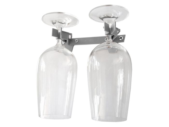 Puede fijar el Portavasos doble por medio de tornillos o con la tira adesiva incluida. Así podrá poner 2 copas de vino en el portavasos y las copas se mantendrán en su lugar durante el transporte.