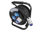 El enrollador de cable ProPlus CEE con una longitud de cable de 25 metros es ideal para su uso en el camping. El carrete de cable tiene 1 enchufe CEE y 1 salida de enchufe CEE. El enrollador se utiliza mucho en la caravana o autocaravana para poder conectarse a la red de electricidad del camping.