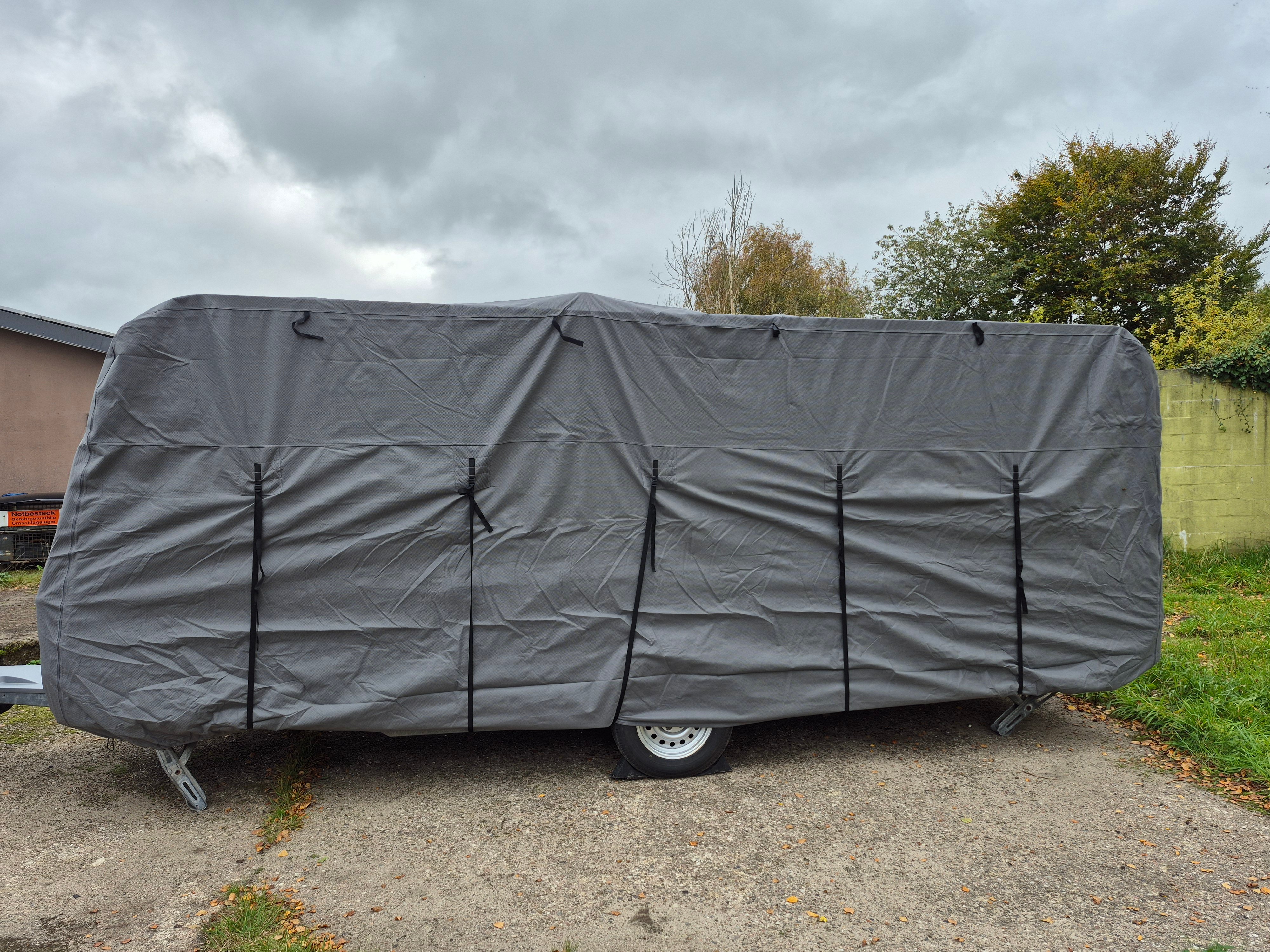 La funda 518 - 579 x 235 cmpara caravana ProPlus Basic Line es una funda transpirable ideal para cubrir su caravana durante el periodo invernal. Esta funda es adecuada tanto para el uso en interiores como en exteriores durante este periodo. Además es resistente a los rayos UV y al agua. Protege su caravana contra la lluvia, la nieve, el polvo, la suciedad y la radiación UV. La cubierta está disponible en varios tamaños.