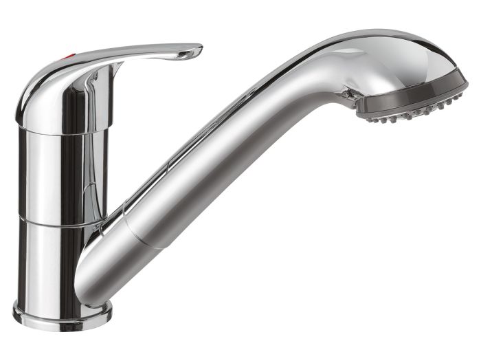 El grifo mezclador/ducha Keramik Kama Julia es un grifo de cocina que además lleva un cabezal de ducha extensible. El grifo es cromado con un máximo de presión de 6 bares, para que usted también se pueda duchar. El cabezal tiene dos posiciones, una de chorro fino y otra de chorro ancho.