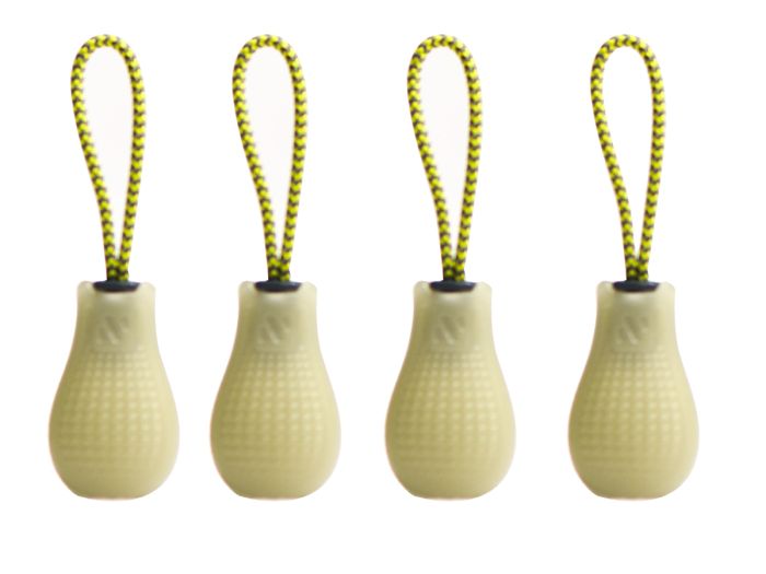 Este set contiene nada menos que 4 tiradores de cremallera que brillan en la oscuridad. Así tiene suficiente para dotar a todos sus abrigos de una cremallera que brille.