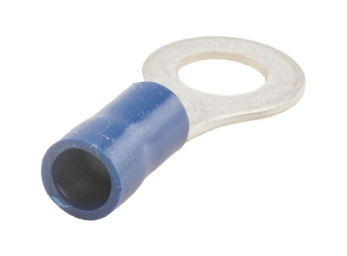 El terminal 5,3 MM de anillo, de color azul es adecuado para cables de 1,5 a 2,5 mm² de grosor. Este terminal tiene un anillo y es fácil de montar en un cable eléctrico. El terminal de anillo es un componente común en la ingeniería eléctrica.