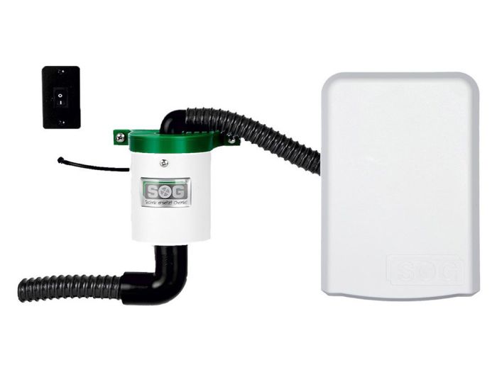 El SOG TT sistema de ventilación de inodoro utiliza un ventilador pequeño y potente que se activa automáticamente cuando se abre la tapa del inodoro. Esto crea un vacío en el tanque del inodoro, aspirando aire fresco y olores expulsándolos hacia el exterior, evitando así olores desagradables.