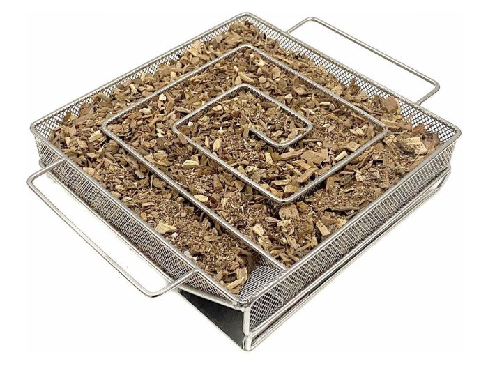 Este Smoke Generator funciona con astillas ahumadoras aunque también funciona con virutas de madera. Este kit lleva Smokey Chips Kersen, un tipo de madera que se encarga de que haya buen olor.